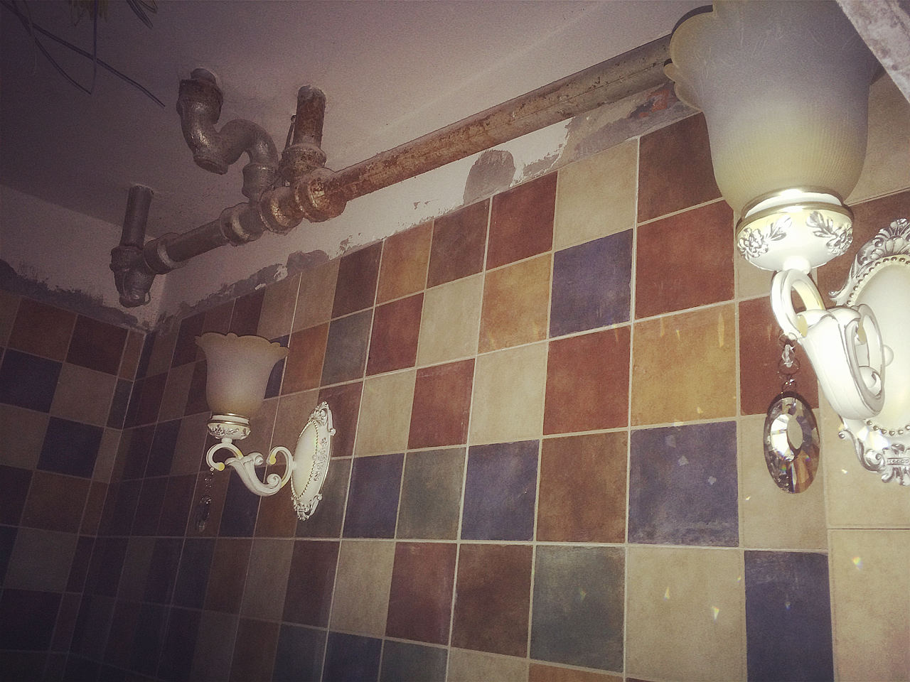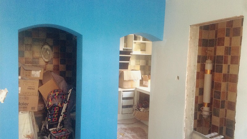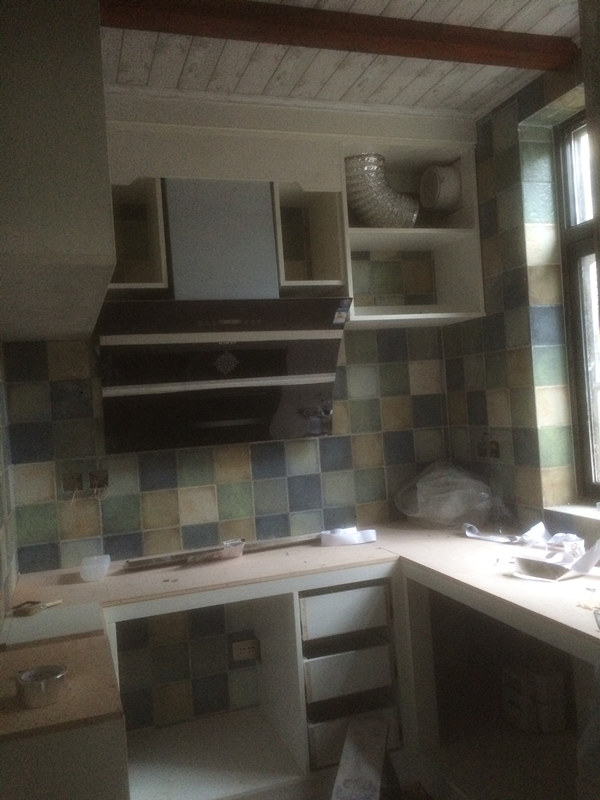彎彎繞繞的管道看的真是頭暈眼花的,功夫不負(fù)有心人,水電師傅終于搞定了,也鋪上了我心心念念的地中海風(fēng)格的瓷磚,開心~~