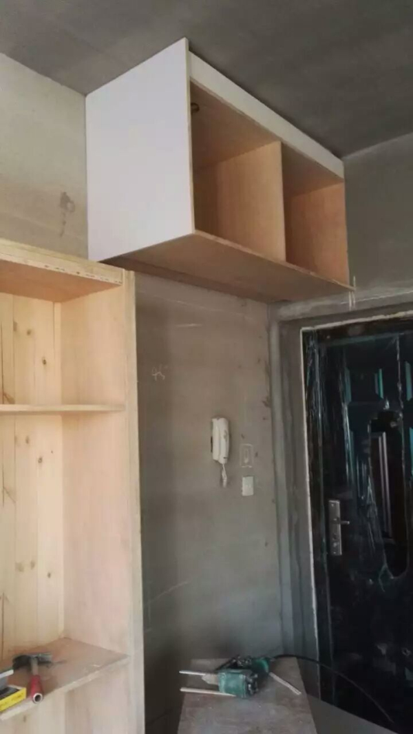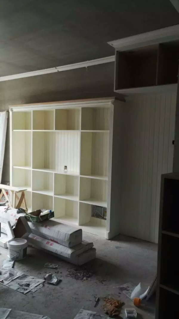 特地讓木工師傅幫我做幾個柜子,客廳的大書柜、鞋柜和頂?shù)豕瘢有一個餐邊柜,板材都是設(shè)計師推薦的,很不錯,木工師傅的手工也很贊,完全做出了我想要的樣子。